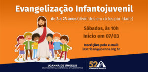 Evangelização Infantojuvenil – Inscrições Abertas A Evangelização Infantojuvenil tem o objetivo de proporcionar o estudo e a vivência da Doutrina ...